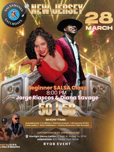Start your night the right way with our Beginner Salsa Class at Salsamania New Jersey, led by Jorge Riascos & Diana Savage. This class is designed for absolute beginners and first-timers looking to learn salsa in a fun, welcoming, and high-energy environment.