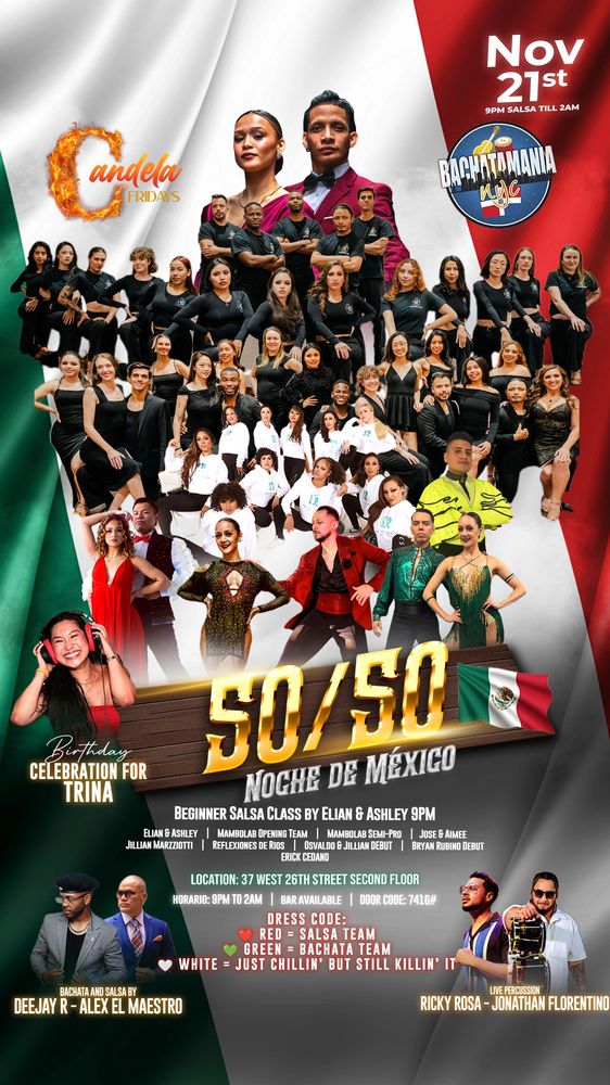 Come early, meet new people, and warm up for our 50/50 Salsa & Bachata Night that continues until 2AM.